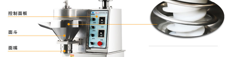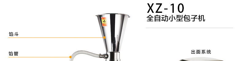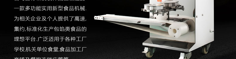名稱XZ-10型全自動包子機(jī) 電源220/380V(見機(jī)器名牌) 功率0.6kw 產(chǎn)量0-1700個/小時 尺寸550*900*1450mm(包括輸送帶) 重量85kg 規(guī)格25-100克/個 其他