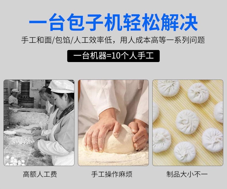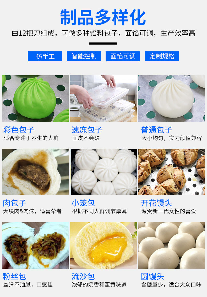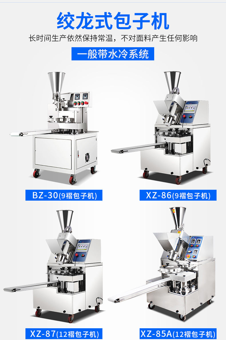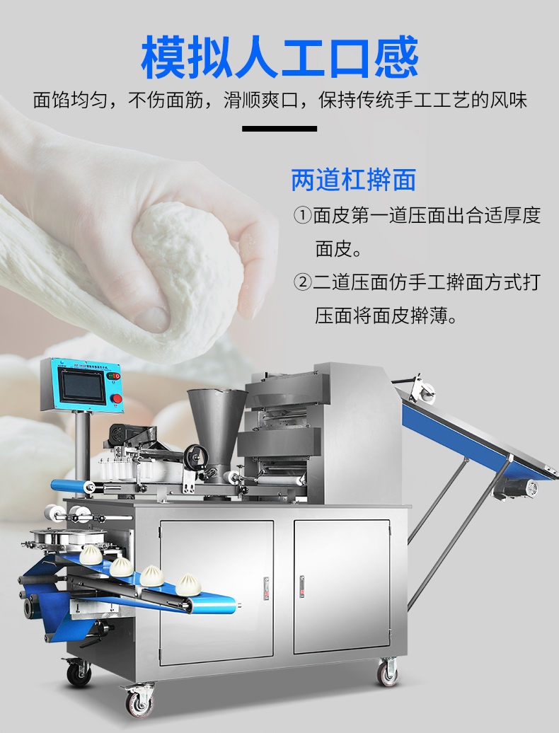 XZ-290A智能型卷面包子機,仿手工智能包子機。操作簡單、精準控制、快速成型、模擬人工。好機器,表里如一,專注品質(zhì)機器,客戶現(xiàn)場試機。一臺包子機輕松解決手工和面/包餡/人工效率低,用人成本高等一系列問題。