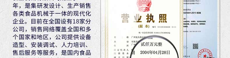廣州旭眾食品機(jī)械有限公司是一家集科研開(kāi)發(fā),生產(chǎn)設(shè)計(jì),營(yíng)銷服務(wù)為一體的現(xiàn)代化生產(chǎn)企業(yè)。現(xiàn)代化生產(chǎn)車間,精湛制造技術(shù),所產(chǎn)機(jī)械歷經(jīng)市場(chǎng)重重考驗(yàn),不斷贏得海內(nèi)外客戶的贊譽(yù)。