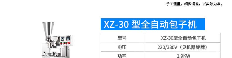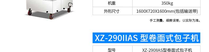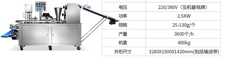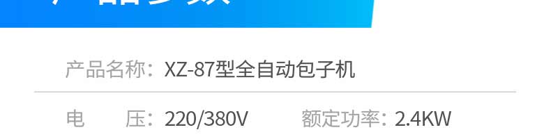 名稱XZ-87全自動(dòng)包子機(jī) 電源220/380v 功率2.4kw 產(chǎn)量 尺寸1600*720*1600mm 重量390kg 規(guī)格20-150克/只 其他