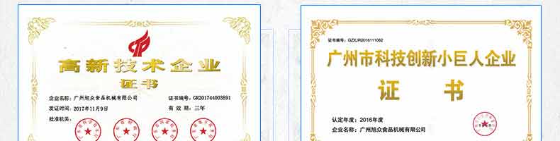 廣州旭眾食品機(jī)械有限公司是一家集科研開發(fā),生產(chǎn)設(shè)計(jì),營(yíng)銷服務(wù)為一體的現(xiàn)代化生產(chǎn)企業(yè)?,F(xiàn)代化生產(chǎn)車間,精湛制造技術(shù),所產(chǎn)機(jī)械歷經(jīng)市場(chǎng)重重考驗(yàn),不斷贏得海內(nèi)外客戶的贊譽(yù)。