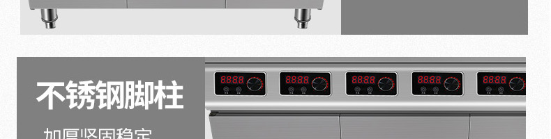 名稱XZ-GBZL210方形柜式電磁爐 電源380V 功率3.5KW×6 產(chǎn)量聯(lián)系銷售員 尺寸1200×800×800+120MM 重量聯(lián)系銷售員 規(guī)格頭數(shù):6頭 其他