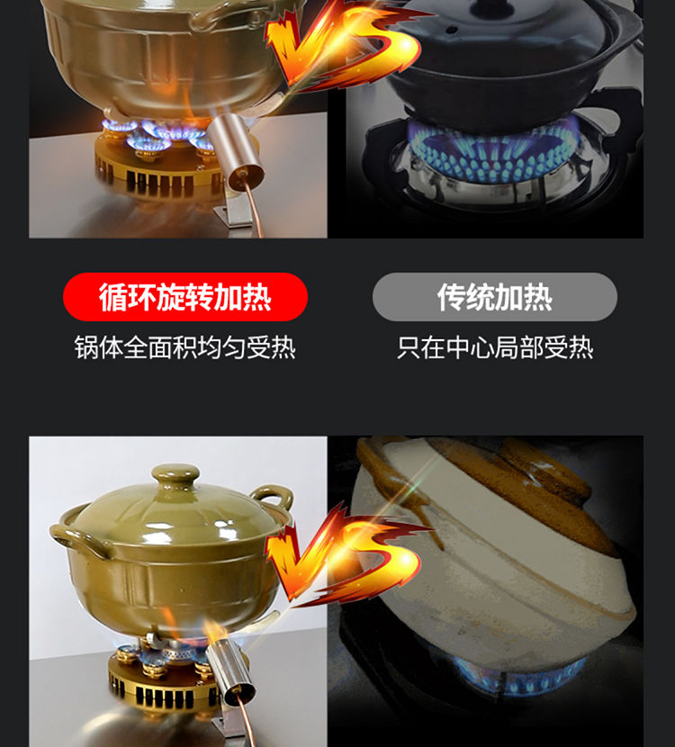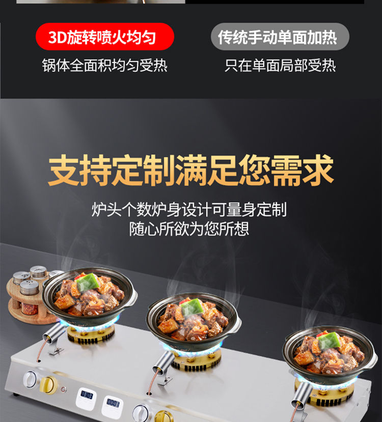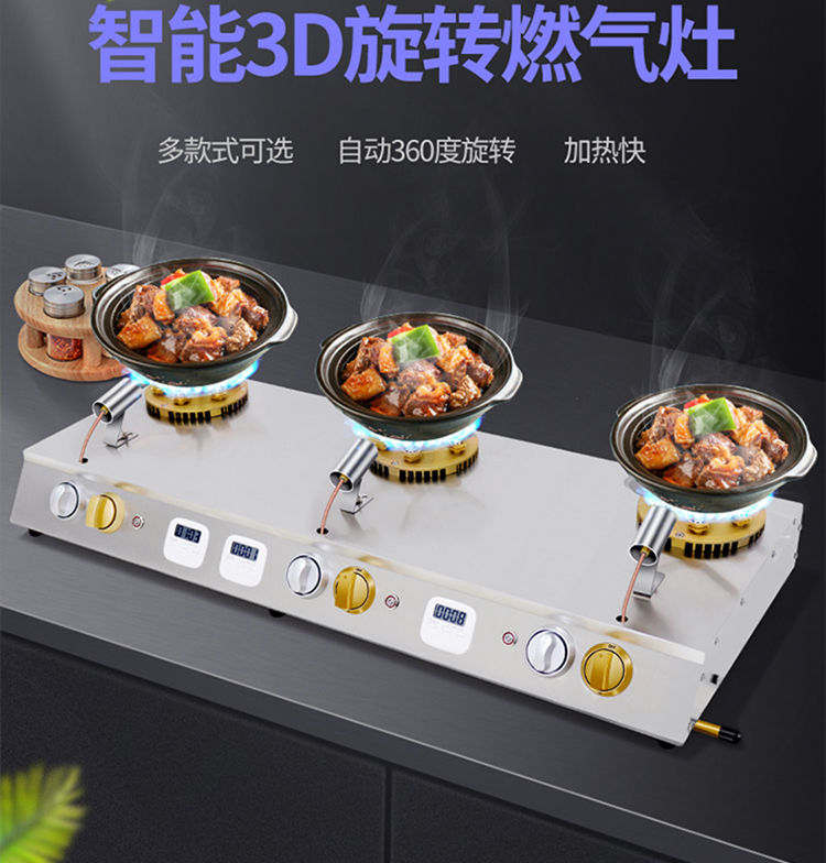 智能煲仔-爐商用四頭六眼旋轉(zhuǎn)韓式猛火灶-砂鍋灶燃氣灶,
