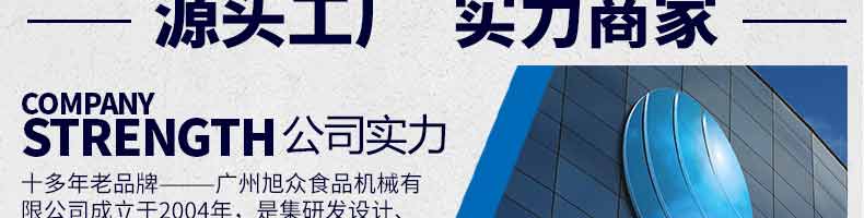 廣州旭眾食品機械有限公司是一家集科研開發(fā),生產(chǎn)設(shè)計,營銷服務(wù)為一體的現(xiàn)代化生產(chǎn)企業(yè)。現(xiàn)代化生產(chǎn)車間,精湛制造技術(shù),所產(chǎn)機械歷經(jīng)市場重重考驗,不斷贏得海內(nèi)外客戶的贊譽。