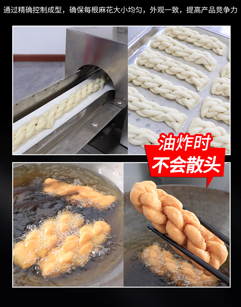 XZ-MH-200麻花機(jī),技術(shù)支持、贈送配方、支持定制,1小時加工60斤麻花。切段均勺、且不粘面,麻花長短可調(diào)。可通過調(diào)節(jié)切刀時間、控制麻花的長度。通過精確控制成型,確保每根麻花大小均勻,外觀一致,提高產(chǎn)品競爭力。