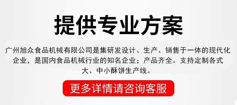 廣州旭眾食品機械有限公司是一家集科研開發(fā),生產設計,營銷服務為一體的現代化生產企業(yè)?,F代化生產車間,精湛制造技術,所產機械歷經市場重重考驗,不斷贏得海內外客戶的贊譽。