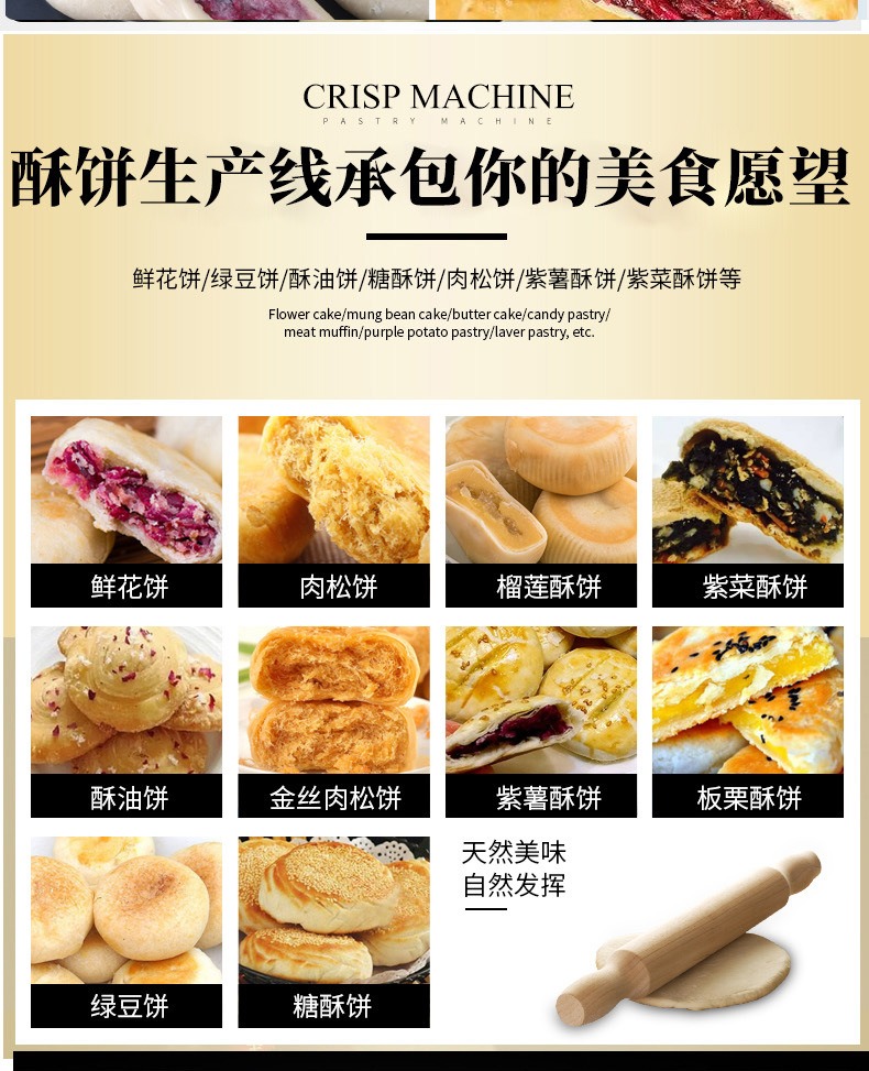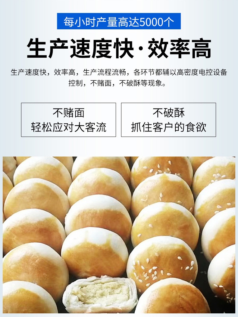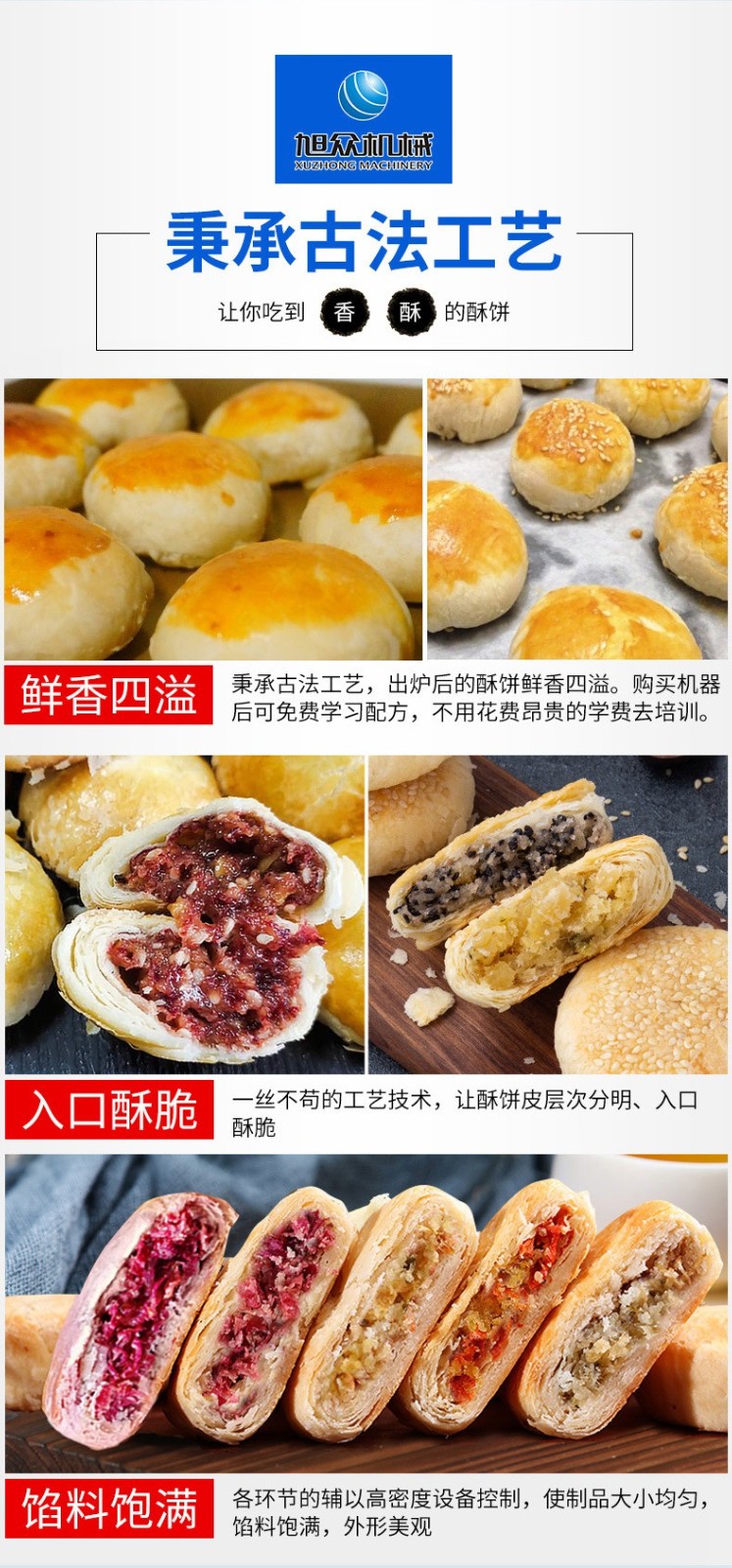 蛋黃酥生產線,酥餅生產線承包你的美食愿望。鮮花餅、綠豆餅、酥油餅、糖酥餅、肉松餅、紫薯酥餅、紫菜酥餅等。每小時產量高達5000個,生產速度快、效率高。