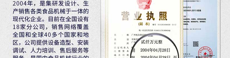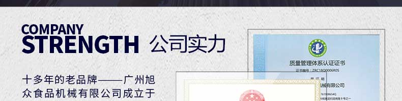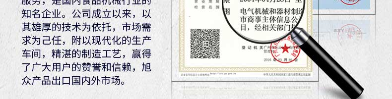 廣州旭眾食品機(jī)械有限公司是一家集科研開(kāi)發(fā),生產(chǎn)設(shè)計(jì),營(yíng)銷(xiāo)服務(wù)為一體的現(xiàn)代化生產(chǎn)企業(yè)?,F(xiàn)代化生產(chǎn)車(chē)間,精湛制造技術(shù),所產(chǎn)機(jī)械歷經(jīng)市場(chǎng)重重考驗(yàn),不斷贏得海內(nèi)外客戶(hù)的贊譽(yù)。