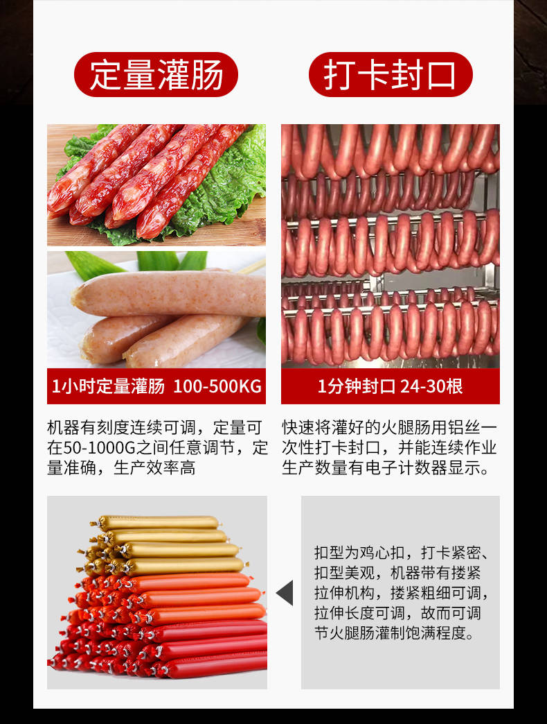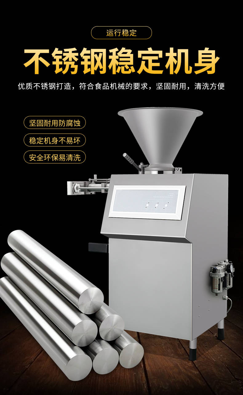 XZ-I型自動(dòng)定量灌腸機(jī),使用優(yōu)質(zhì)不銹鋼制造,符合食品機(jī)械的要求,只需1人操作,特別適合中小型肉食加工廠使用,以各種畜禽類肉糜為原料的香腸、火腿腸、熱狗等天然腸衣、蛋白腸衣、煙熏腸衣等制品,可以灌制定重量單腸,也可連續(xù)灌制長(zhǎng)腸。