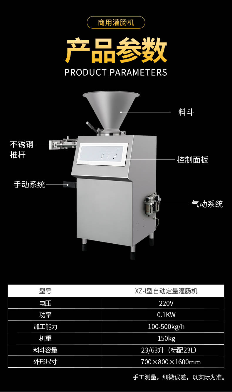 名稱XZ-I型自動(dòng)定量灌腸機(jī) 電源220V 功率0.1KW 產(chǎn)量100-500kg/h 尺寸700×800×1600mm 重量150KG 規(guī)格 其他料斗容量23/63升(標(biāo)配23L)