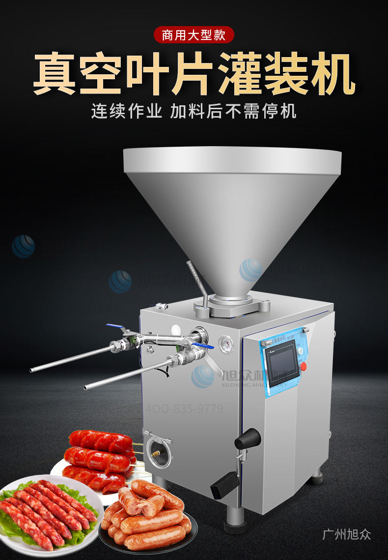 XZ-ZKG2800真空灌腸機,真空葉片灌裝機連續(xù)作業(yè)加料后不需停機,可灌肉粒&肉糜實用性強灌各種腸可做烤腸、親親腸、廣式臘腸、火鍋腸等連續(xù)灌制長腸。