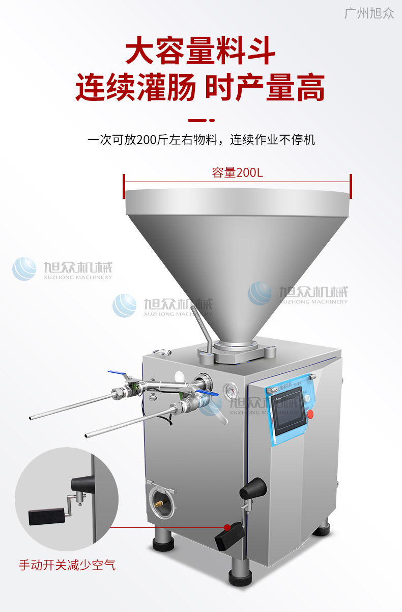 作者:旭眾機械發(fā)布時間:2023-06-30 00:34查看數:您當前的位置:首頁>>產品展示>>肉制品加工系列>>灌腸機系列