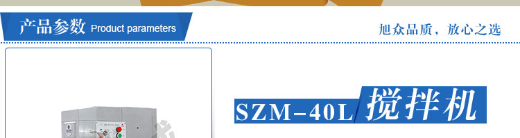 名稱SZM-40、50、60攪拌機(jī)系列 電源220/380V 220/380V 220/380V 功率2.2KW 2.6KW 3.5KW 產(chǎn)量 尺寸外形尺寸700*550*990mm 870*600*1170mm 900*620*1250mm 重量145kg 248kg 265kg 規(guī)格 其他
