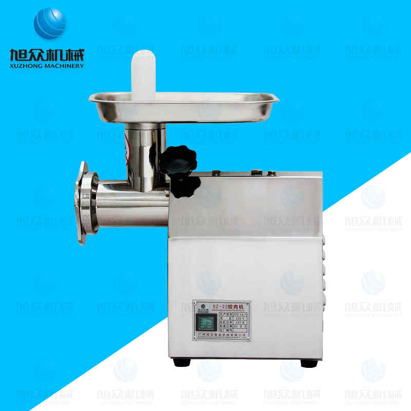 SZ-22 電動(dòng)絞肉機(jī),電動(dòng)絞肉機(jī)的校孔直徑為6、8mm,本機(jī)優(yōu)點(diǎn)具有電耐用、方便快捷、結(jié)構(gòu)緊湊、外形美觀、操作方便、效率高、耗電少、清潔保養(yǎng)容易、安全衛(wèi)生等優(yōu)點(diǎn)。采用全封閉齒輪傳動(dòng),結(jié)構(gòu)緊湊,運(yùn)轉(zhuǎn)平穩(wěn),工作可靠,且維修方便;絞肉機(jī)頭及接觸食品的零部件都采用不銹鋼制造,安全無(wú)污染;機(jī)殼線條流暢,沒有可污的縫隙及無(wú)傷害操作者的銳邊,易于清潔。