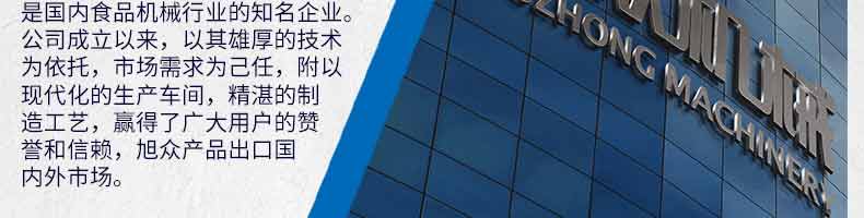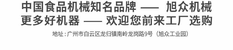 廣州旭眾食品機(jī)械有限公司是一家集科研開(kāi)發(fā),生產(chǎn)設(shè)計(jì),營(yíng)銷服務(wù)為一體的現(xiàn)代化生產(chǎn)企業(yè)?,F(xiàn)代化生產(chǎn)車間,精湛制造技術(shù),所產(chǎn)機(jī)械歷經(jīng)市場(chǎng)重重考驗(yàn),不斷贏得海內(nèi)外客戶的贊譽(yù)。