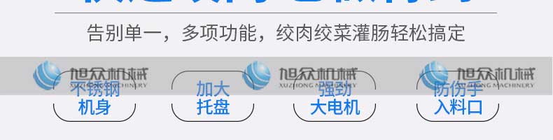 XZL-32A絞肉機,快速絞肉它做得到。告別單一,多項功能,絞肉絞菜灌腸輕松搞定。機身小巧使用便利,是廚房的理想之選絞餡無壓力,適合餐廳,飯店,酒店等場所使用無焊接方便耐用,快速出肉。顆粒分明,還原手工口感可絞肉/灌腸/切菜,輕松滿足需求。