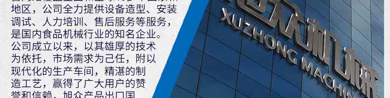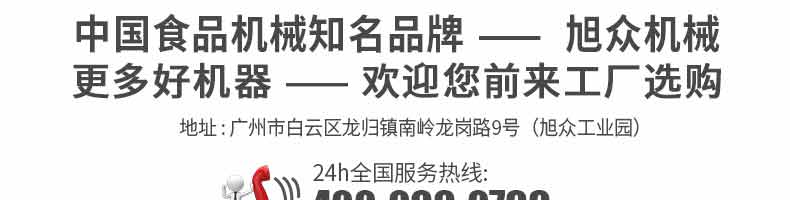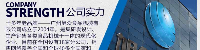 廣州旭眾食品機械有限公司是一家集科研開發(fā),生產(chǎn)設(shè)計,營銷服務為一體的現(xiàn)代化生產(chǎn)企業(yè)。現(xiàn)代化生產(chǎn)車間,精湛制造技術(shù),所產(chǎn)機械歷經(jīng)市場重重考驗,不斷贏得海內(nèi)外客戶的贊譽。