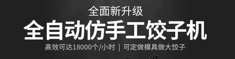 名稱JGB-280仿手工餃子機 電源220/380V 功率1.75kw 產(chǎn)量0-18000個/小時 尺寸1260*1230*1300mm 重量270KG 規(guī)格 其他