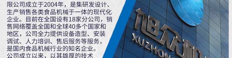 廣州旭眾食品機械有限公司是一家集科研開發(fā),生產(chǎn)設(shè)計,營銷服務(wù)為一體的現(xiàn)代化生產(chǎn)企業(yè)?,F(xiàn)代化生產(chǎn)車間,精湛制造技術(shù),所產(chǎn)機械歷經(jīng)市場重重考驗,不斷贏得海內(nèi)外客戶的贊譽。