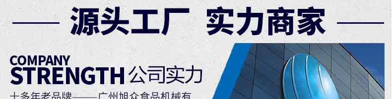 廣州旭眾食品機(jī)械有限公司是一家集科研開發(fā),生產(chǎn)設(shè)計,營銷服務(wù)為一體的現(xiàn)代化生產(chǎn)企業(yè)。現(xiàn)代化生產(chǎn)車間,精湛制造技術(shù),所產(chǎn)機(jī)械歷經(jīng)市場重重考驗,不斷贏得海內(nèi)外客戶的贊譽。