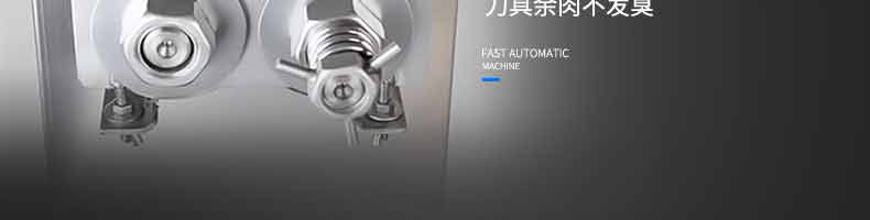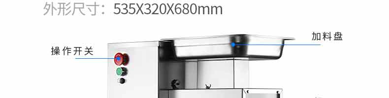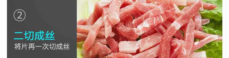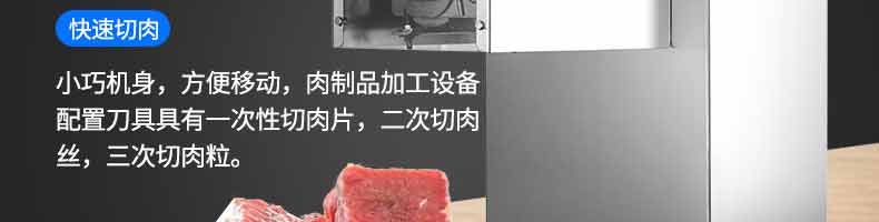XZ-QX320-切肉機(jī),小型切肉機(jī)是一款主要對(duì)肉類(lèi)進(jìn)行加工的設(shè)備,配置單層刀具一次性切肉片,二次切肉絲,再切成料。刀具采取外置懸臂式設(shè)計(jì),拆洗方便,衛(wèi)生更有保障;配置多種刀具,可加工不同厚度的肉片,實(shí)現(xiàn)一機(jī)多用;機(jī)內(nèi)裝有安全保護(hù)開(kāi)頭,刀具外露時(shí),機(jī)器自鎖不能啟動(dòng),以保安全;卸下的刀具,不用清洗直接放置在6攝氏度以下的冰箱里,刀具余肉不發(fā)臭。刀片用特殊不銹鋼材料制造,經(jīng)久耐用。
