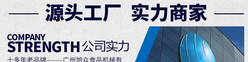 廣州旭眾食品機(jī)械有限公司是一家集科研開(kāi)發(fā),生產(chǎn)設(shè)計(jì),營(yíng)銷(xiāo)服務(wù)為一體的現(xiàn)代化生產(chǎn)企業(yè)。現(xiàn)代化生產(chǎn)車(chē)間,精湛制造技術(shù),所產(chǎn)機(jī)械歷經(jīng)市場(chǎng)重重考驗(yàn),不斷贏得海內(nèi)外客戶(hù)的贊譽(yù)。