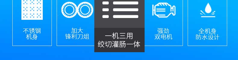 XZ-7絞切機(jī),多功能一體機(jī),切肉絞肉/灌腸/切菜。加厚不銹鋼優(yōu)質(zhì)機(jī)身堅(jiān)固耐用,不易生銹,安全衛(wèi)生易清洗。