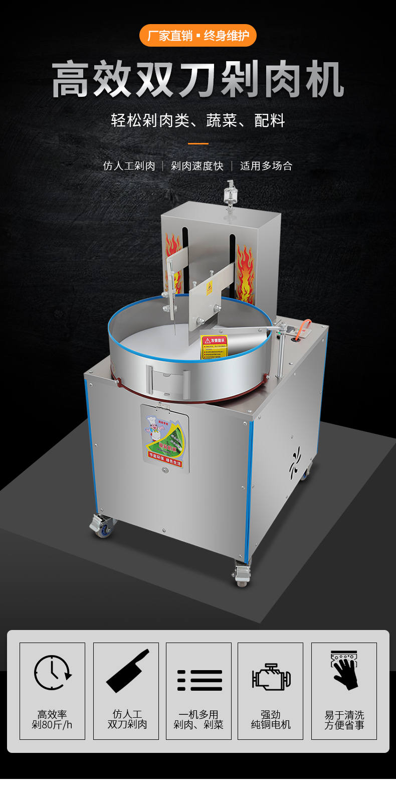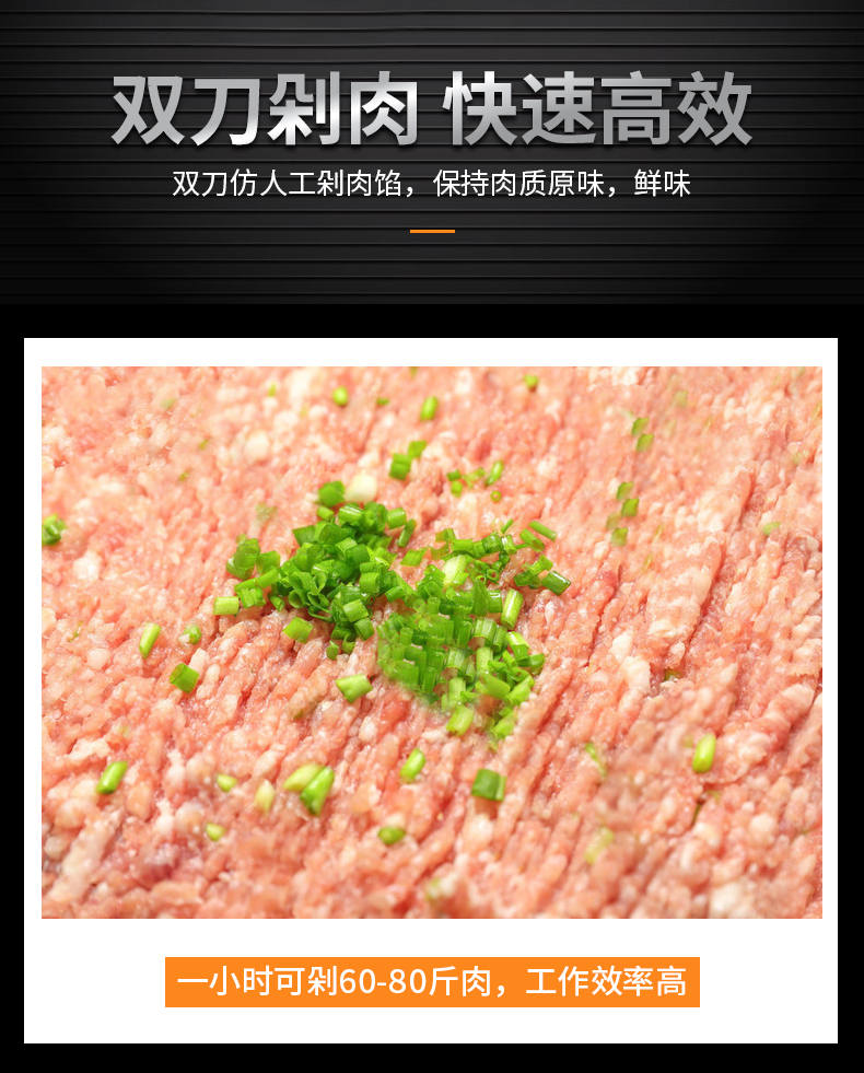 XZ-FL30剁肉機(jī),高效雙萬剁肉機(jī),輕松剁肉類、蔬菜、配料。仿人工剁肉、剁肉速度快、適用多場合。輕松搞定各種食材旭眾雙刀剁肉機(jī),讓你告別人工,高效剁各種食材。不銹鋼穩(wěn)定機(jī)身加厚不銹鋼板材,堅固耐用,不易生銹,延長使用壽命