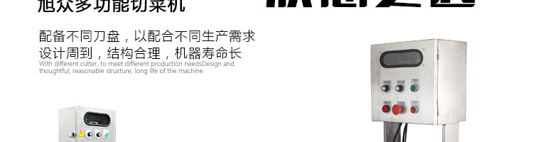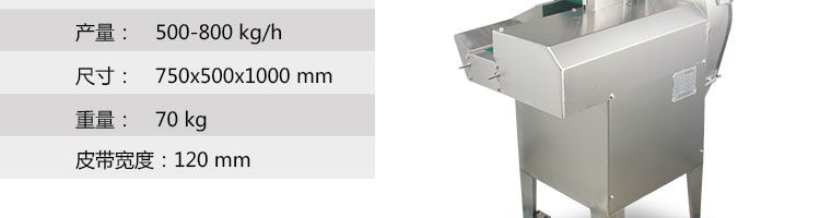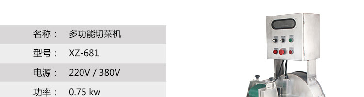 名稱XZ-681多功能切菜機 電源220/380V(見機器銘牌) 功率0.75kw 產(chǎn)量500-800千克/小時 尺寸770*460*1400mm 重量70kg 規(guī)格 其他