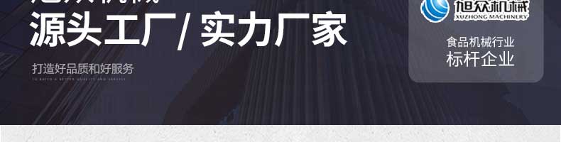 廣州旭眾食品機(jī)械有限公司是一家集科研開發(fā),生產(chǎn)設(shè)計(jì),營銷服務(wù)為一體的現(xiàn)代化生產(chǎn)企業(yè)?,F(xiàn)代化生產(chǎn)車間,精湛制造技術(shù),所產(chǎn)機(jī)械歷經(jīng)市場重重考驗(yàn),不斷贏得海內(nèi)外客戶的贊譽(yù)。