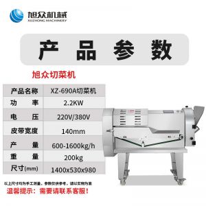 名稱XZ-690A型多功能切菜機(jī) 電源220/380V 功率2.2KW 產(chǎn)量600kg1600kg/h 尺寸1400X530X980mm 重量200kg 規(guī)格 其他皮帶寬度140mm