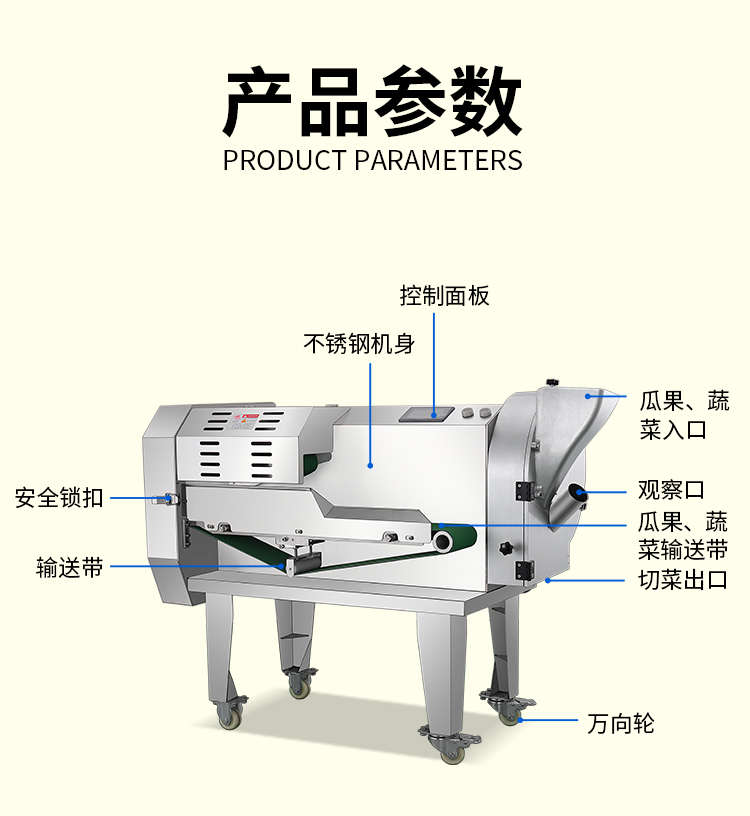XZ-690A型多功能切菜機(jī),工作效率高,幫你省人工費(fèi)。1小時(shí)可切600kg-1600kg/h,1臺(tái)機(jī)器等于多名廚師同時(shí)為您工作。一機(jī)多用,可切瓜果、蔬菜、藥材,刀片可進(jìn)行更換,設(shè)計(jì)周到,結(jié)構(gòu)合理,簡(jiǎn)單輕松應(yīng)對(duì)。