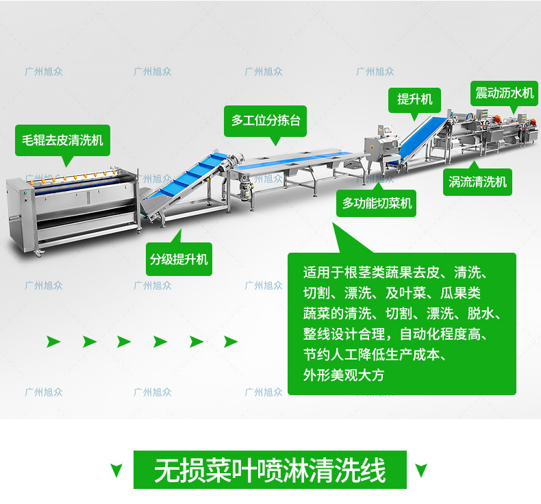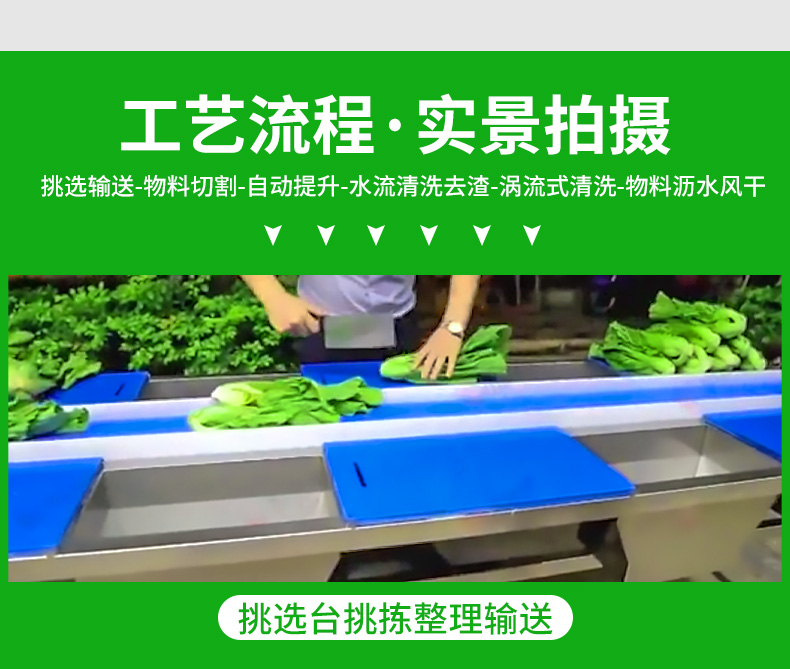 全自動(dòng)大型葉菜清洗線,自動(dòng)化程度高、整線設(shè)計(jì)合理、節(jié)約人工降低生產(chǎn)成本、外形美觀大方。主要用于葉菜加工,整線自動(dòng)化凈菜生產(chǎn)此線將切割、清洗、風(fēng)干設(shè)備連接成線,適合芹菜、韭菜菠菜、大白菜高麗菜、大蔥等葉菜類蔬菜加工生產(chǎn)
