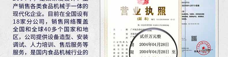 廣州旭眾食品機(jī)械有限公司是一家集科研開發(fā),生產(chǎn)設(shè)計(jì),營(yíng)銷服務(wù)為一體的現(xiàn)代化生產(chǎn)企業(yè)?,F(xiàn)代化生產(chǎn)車間,精湛制造技術(shù),所產(chǎn)機(jī)械歷經(jīng)市場(chǎng)重重考驗(yàn),不斷贏得海內(nèi)外客戶的贊譽(yù)。