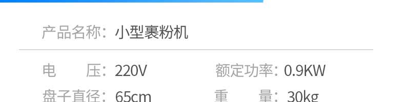 名稱小型裹粉機(jī) 電源220V 功率0.9KW 產(chǎn)量 尺寸450*450*470mm 重量30kg 規(guī)格 其他
