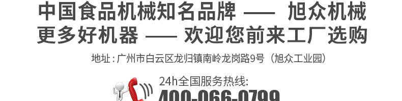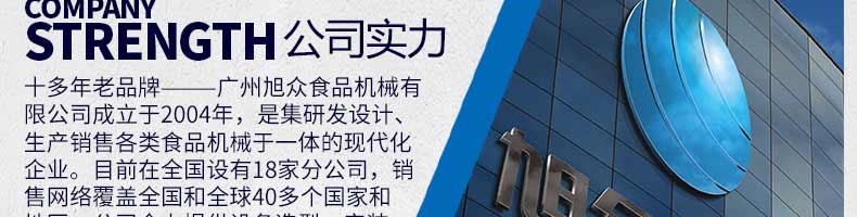 廣州旭眾食品機(jī)械有限公司是一家集科研開發(fā),生產(chǎn)設(shè)計(jì),營(yíng)銷服務(wù)為一體的現(xiàn)代化生產(chǎn)企業(yè)?,F(xiàn)代化生產(chǎn)車間,精湛制造技術(shù),所產(chǎn)機(jī)械歷經(jīng)市場(chǎng)重重考驗(yàn),不斷贏得海內(nèi)外客戶的贊譽(yù)。