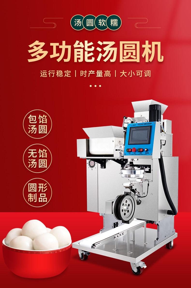 4000C湯圓機(jī),多功能湯圓機(jī),運(yùn)行穩(wěn)定、時(shí)產(chǎn)量高、大小可調(diào)。制品多樣性生產(chǎn)各種大小規(guī)格不同的有餡湯圓,無(wú)餡湯圓、豆沙包、南瓜餅,芝麻球,地瓜丸,香芋丸,葉兒粑,青團(tuán),粘豆包等。