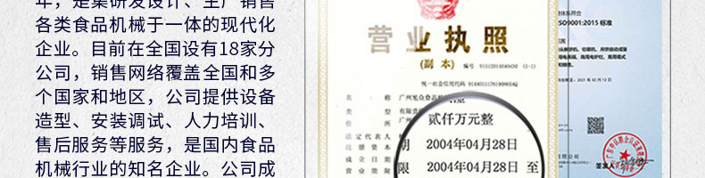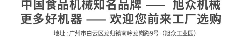 廣州旭眾食品機(jī)械有限公司是一家集科研開發(fā),生產(chǎn)設(shè)計(jì),營銷服務(wù)為一體的現(xiàn)代化生產(chǎn)企業(yè)?,F(xiàn)代化生產(chǎn)車間,精湛制造技術(shù),所產(chǎn)機(jī)械歷經(jīng)市場(chǎng)重重考驗(yàn),不斷贏得海內(nèi)外客戶的贊譽(yù)。