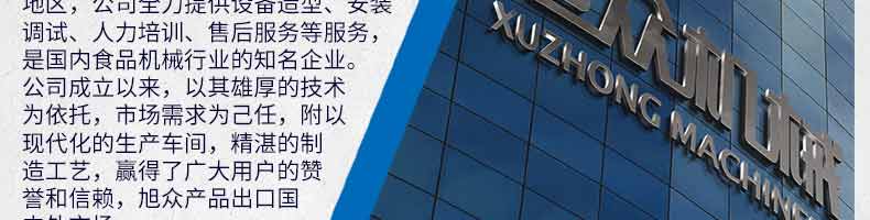 廣州旭眾食品機(jī)械有限公司是一家集科研開發(fā),生產(chǎn)設(shè)計(jì),營銷服務(wù)為一體的現(xiàn)代化生產(chǎn)企業(yè)?,F(xiàn)代化生產(chǎn)車間,精湛制造技術(shù),所產(chǎn)機(jī)械歷經(jīng)市場重重考驗(yàn),不斷贏得海內(nèi)外客戶的贊譽(yù)。
