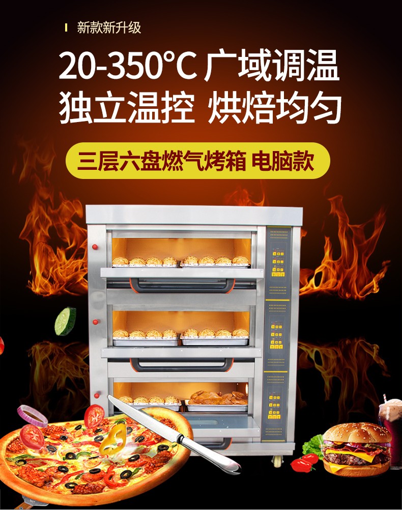三層六盤電腦版燃氣烤箱,