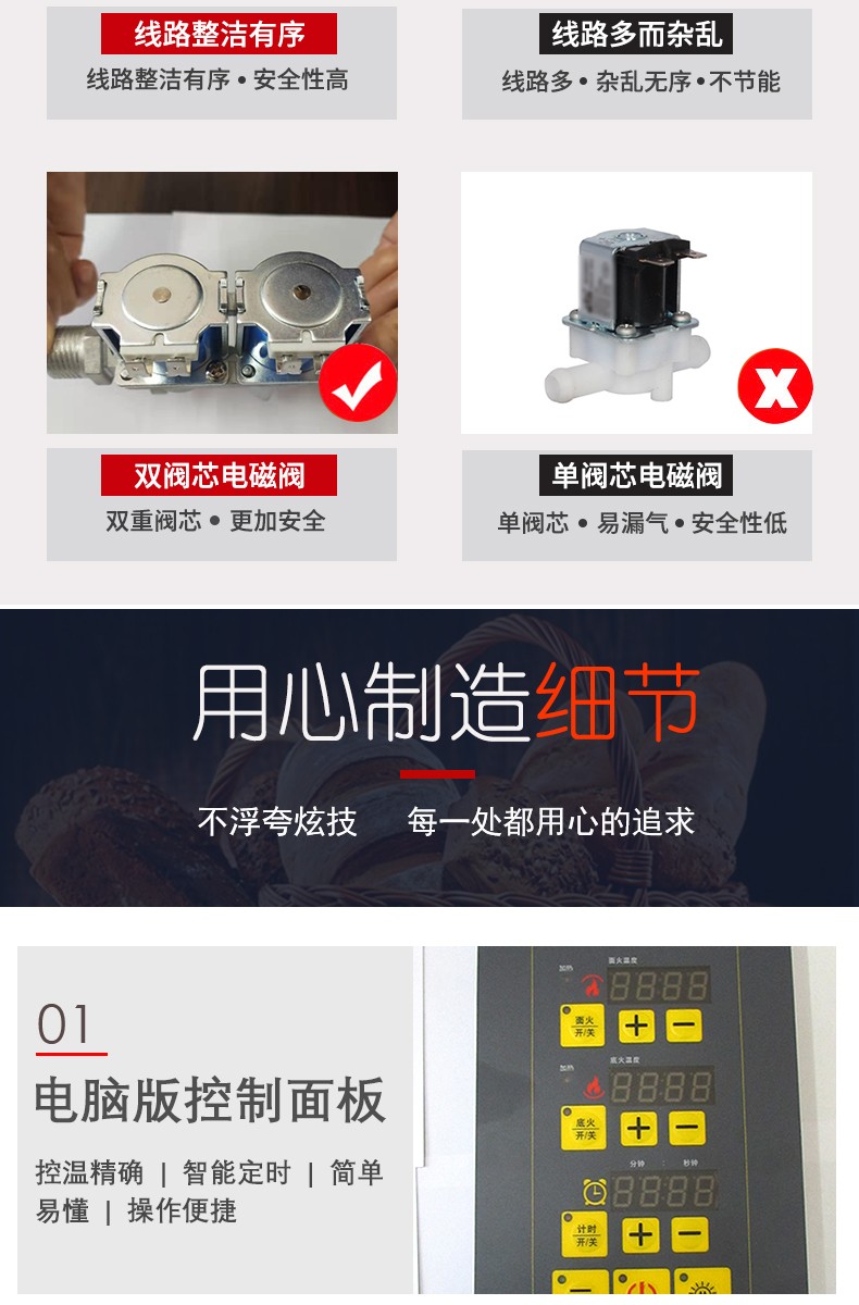 名稱三層六盤電腦版燃氣烤箱 電源220V 功率0.3KW 產(chǎn)量 尺寸1340*908*1690mm 重量300KG 規(guī)格三層六盤 其他