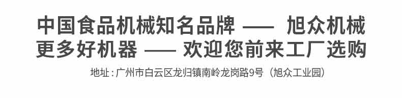 廣州旭眾食品機械有限公司是一家集科研開發(fā),生產設計,營銷服務為一體的現代化生產企業(yè)?,F代化生產車間,精湛制造技術,所產機械歷經市場重重考驗,不斷贏得海內外客戶的贊譽。