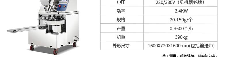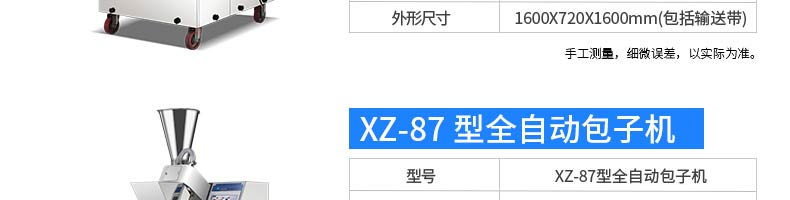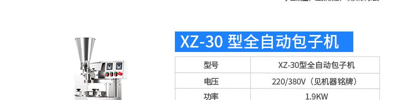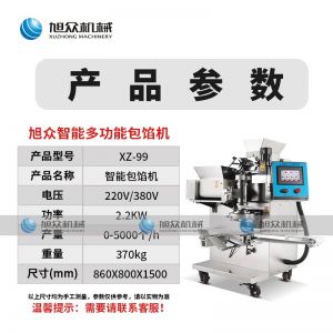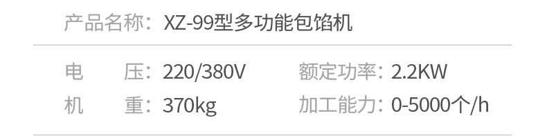 名稱XZ-99包餡機(jī) 電源220/380v 功率2.2kw 產(chǎn)量聯(lián)系銷售員 尺寸860*800*1500mm 重量370kg 規(guī)格聯(lián)系銷售員 其他