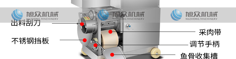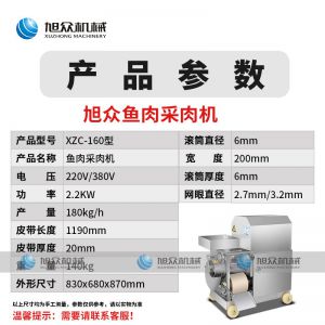 XZC-160型魚肉采肉機(jī),去刺干凈、高效出肉。加工魚肉去刺、蟹蝦去殼等。手工去魚刺太累了,傳統(tǒng)的魚糜加工中,手工去魚皮魚刺,既費(fèi)時(shí)又費(fèi)力不小心就會(huì)傷到手。