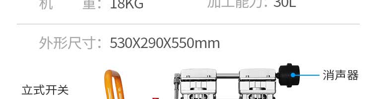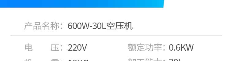名稱空壓機(jī) 電源220v 功率0.6kw 產(chǎn)量30l 尺寸530*290*550mm 重量18kg 規(guī)格 其他